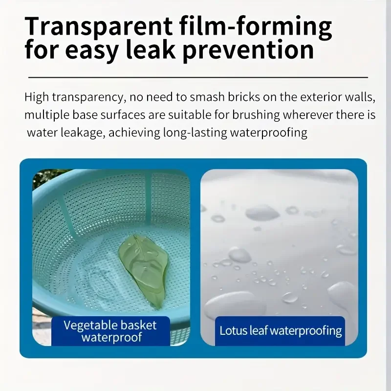 1. Powerful Sealant: Transparent waterproof agent can instantly seal most surfaces with any material. It's a potent sealant that provides an efficient and immediate solution to seal and repair broken surfaces.