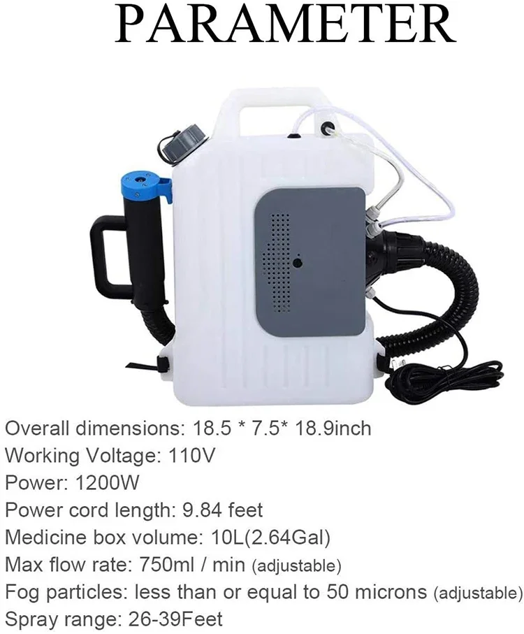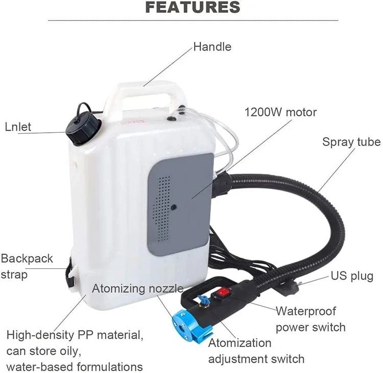ULTRA LOW VOLUME/CAPACITY FOGGER - the aerosol droplets dia the fogger sprays out is 5-50μm, high efficiency for home, school, office and more places agriculture, gardening and planting disinfection