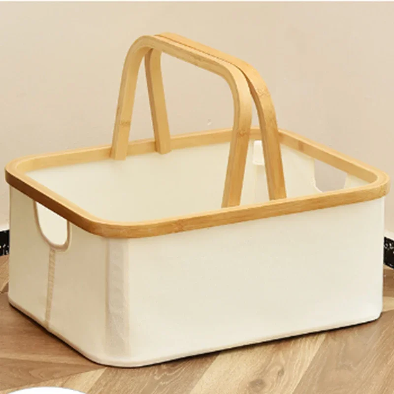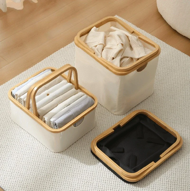 Bamboo Handle Storage Basket Large Capacity Foldable Bathroom Toy Clothing Desktop Organiser Dormitory Dirty Clothes Basket