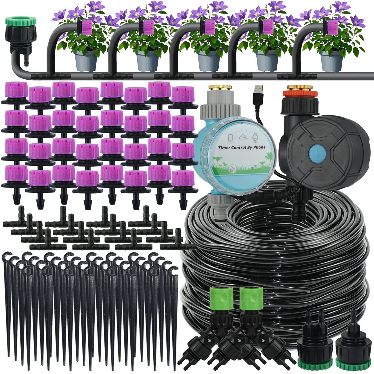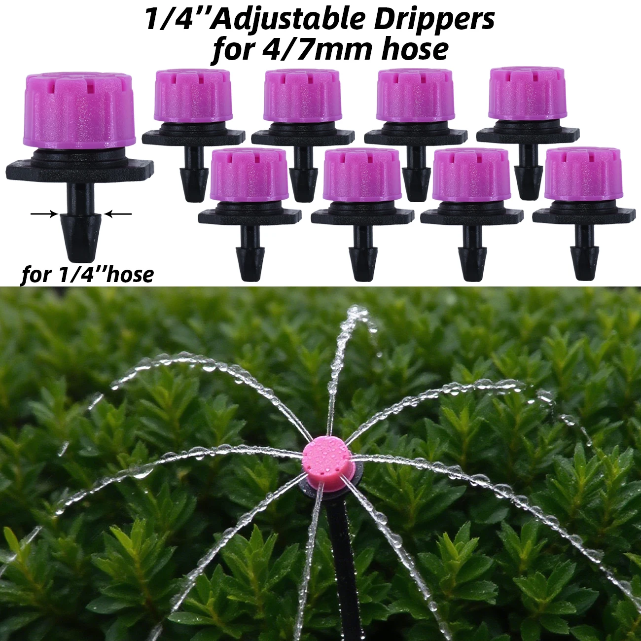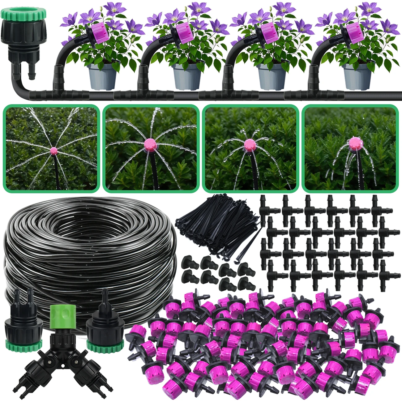 Garden 1/4'' Drip Irrigation Kit Automatic Watering System Nozzles for Farmland Bonsai Plant Flower Vegetable Greenhouse