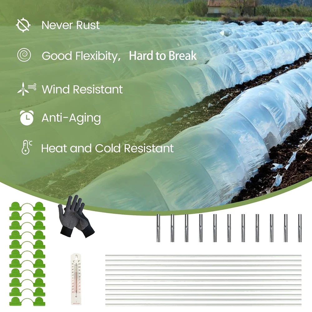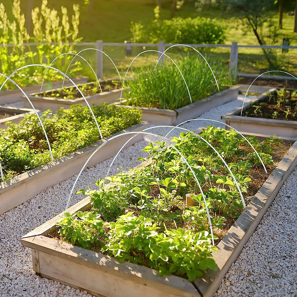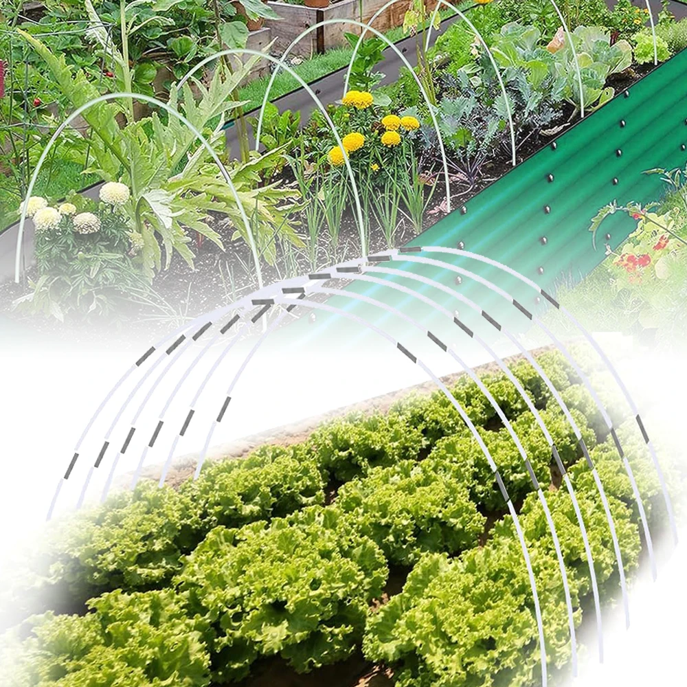 【FEATURES】The hoops are durable with strong resistance. They are designed for plant covers, frost protection covers, and greenhouses, providing an ideal environment for the rapid germination and growth of young plants.