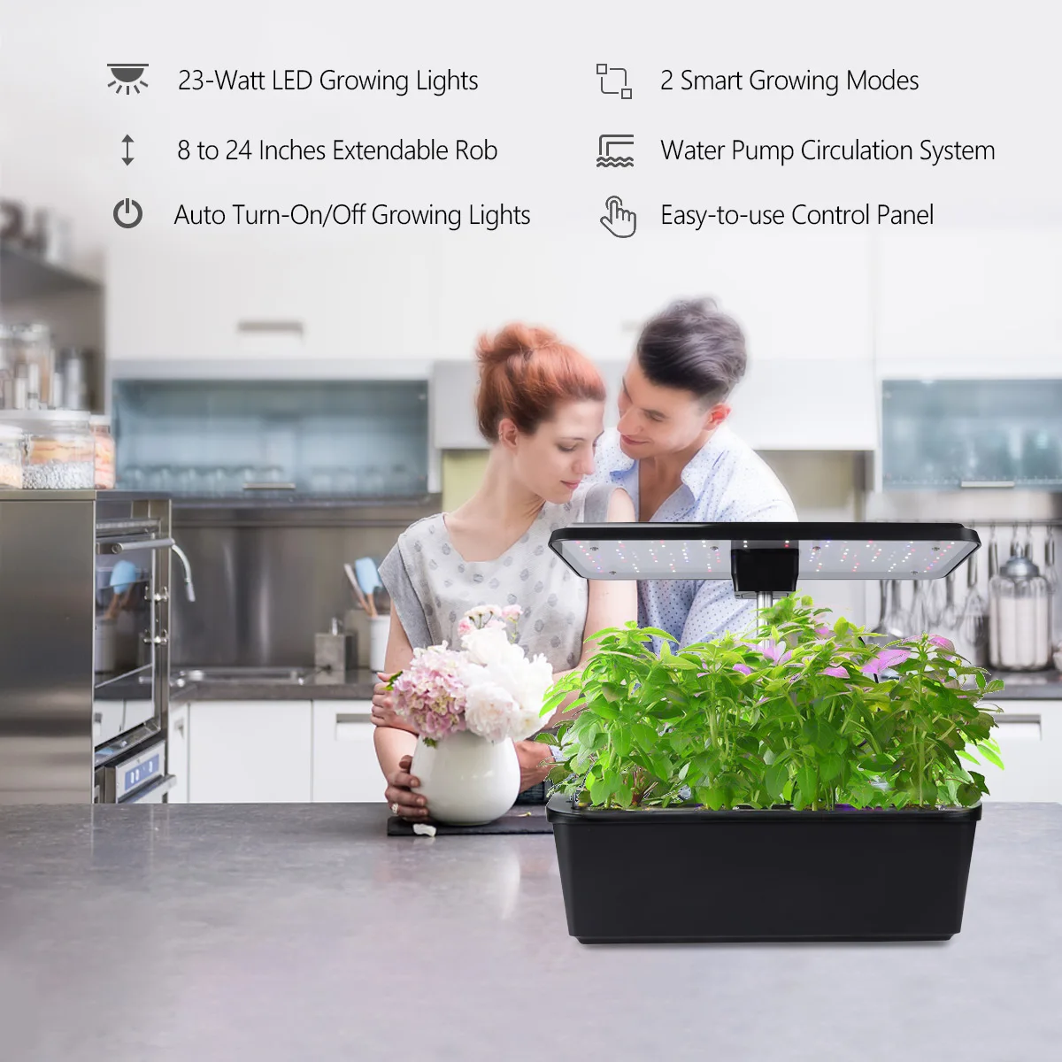 12 Pods Hydroponic System: This hydroponics growing system has 12 pods, and you can grow 12 plants and vegetables up to 23.62 inches tall at the same time.