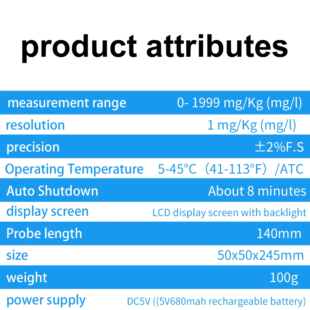 Measuring range: 0-1999 mg/Kg (mg/l)