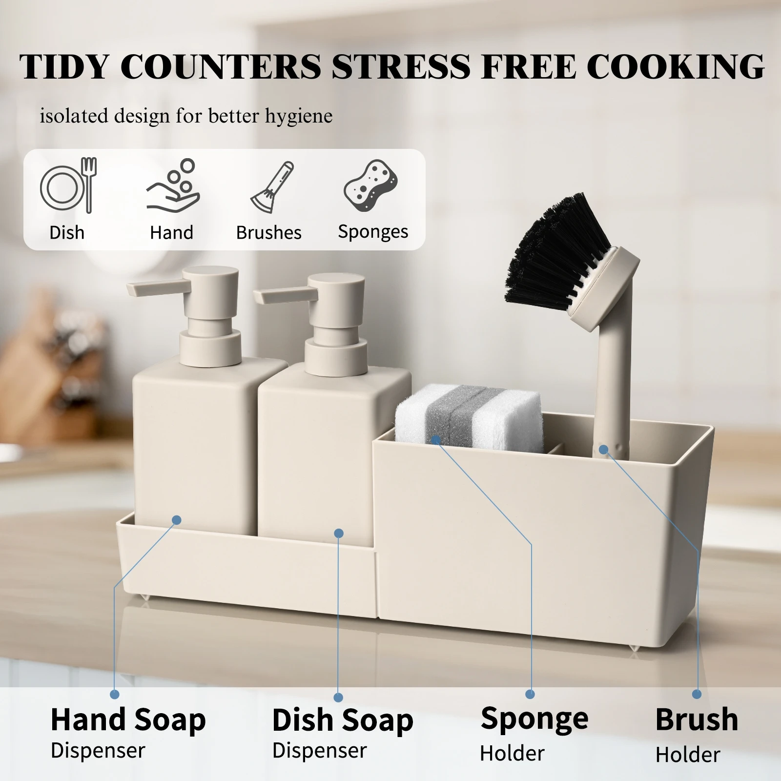 Distributeur automatique de savon cuisine - porte-éponge inclus