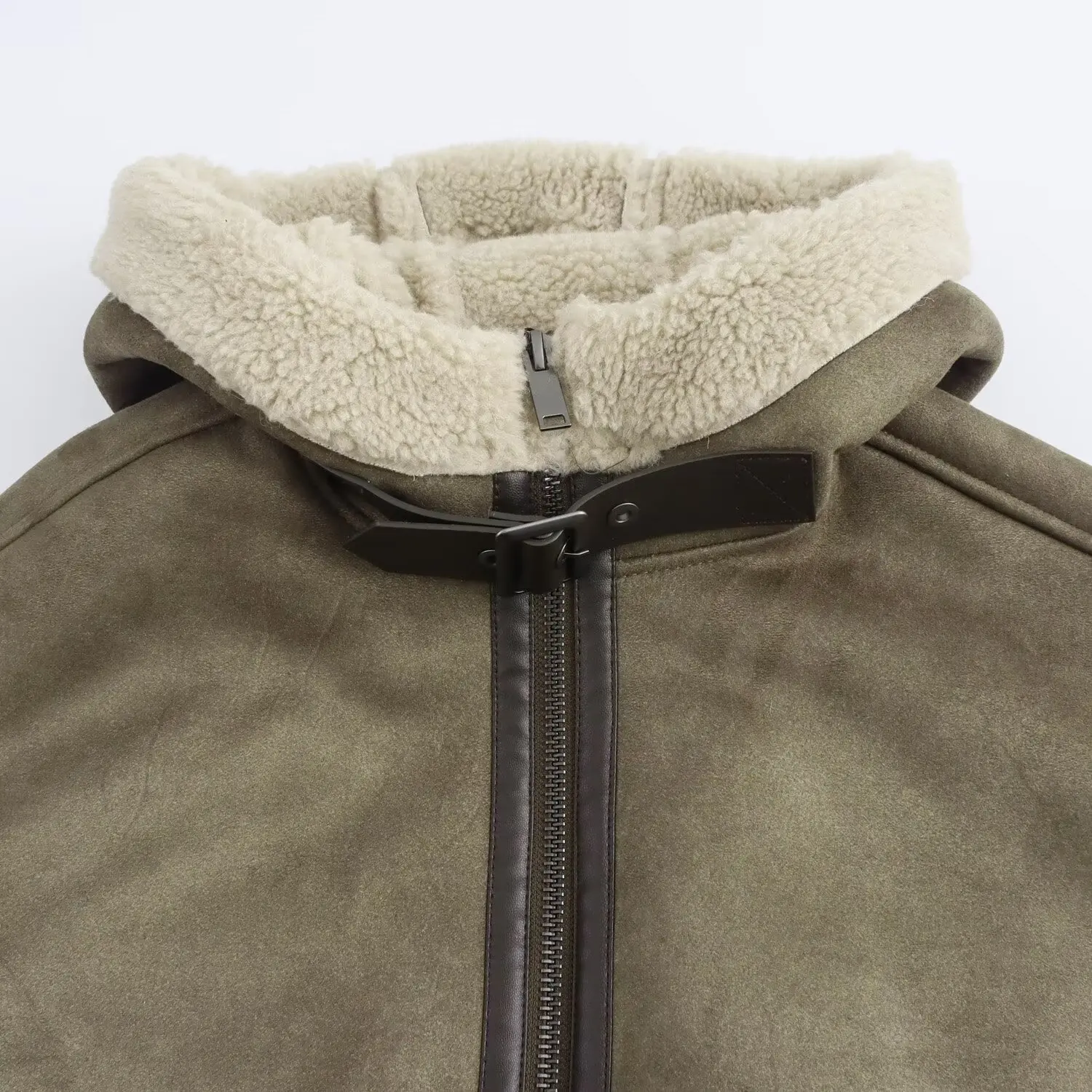 MUJER Double Face Hooded Jackets for Women Zip Padded Plush Jacket Women Outerwear Winter Coat Female Long Sleeve Women's Jacket