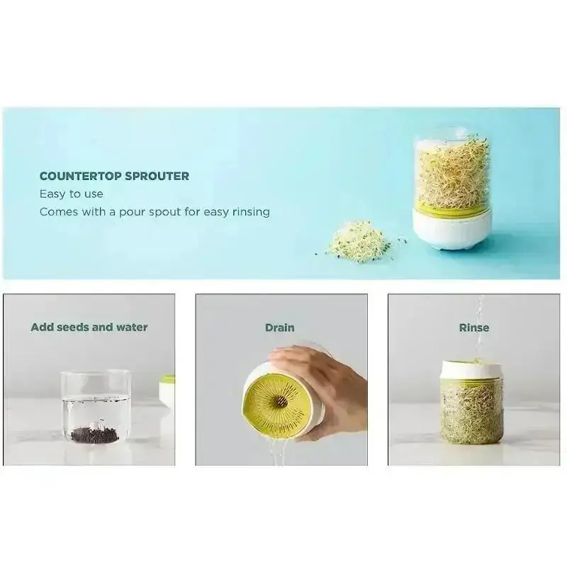 New 1Pcs Countertop Sprouter Sprouts Growing Kit Reusable Household Kitchen Bean Plants Sprouting System Seeds Crop Container