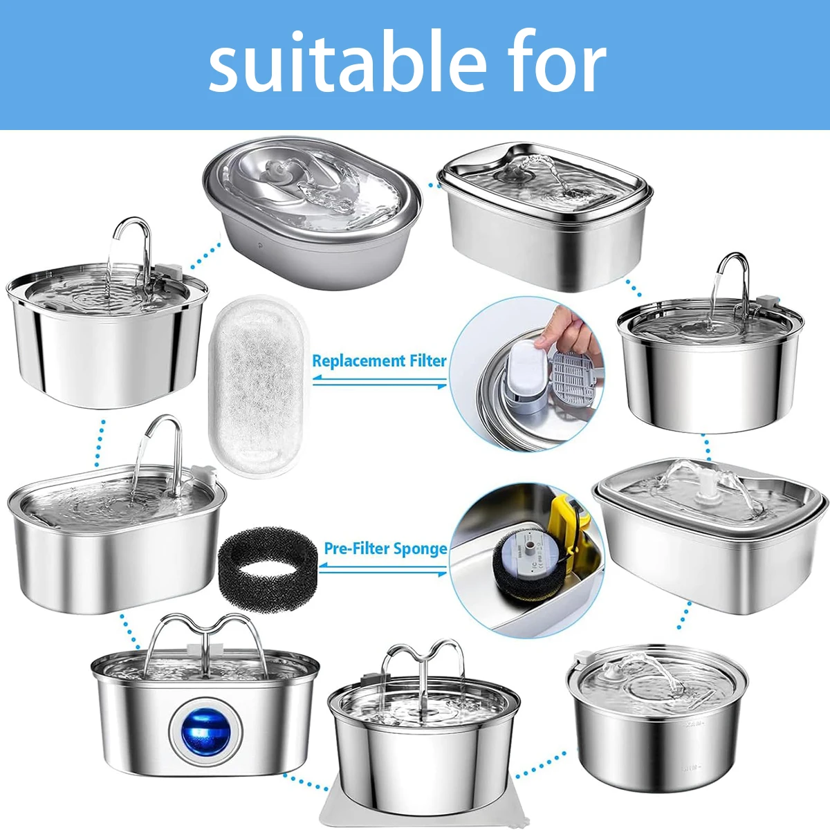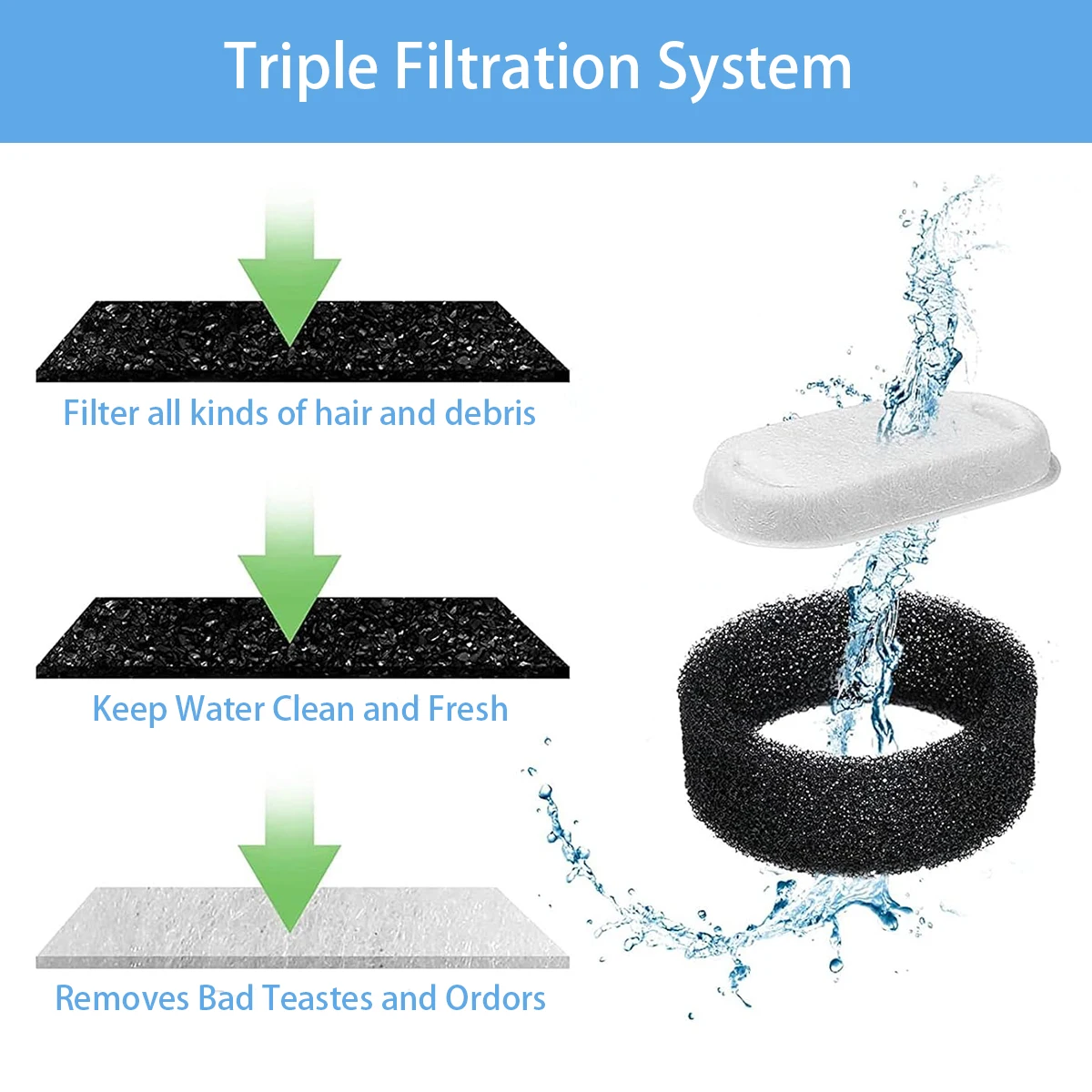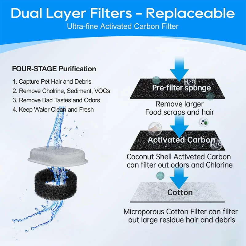 Pet Water Dispenser Filter Cat Water Fountain Filter Drinking Fountain Filter Cycle Filtering Easy To Clean