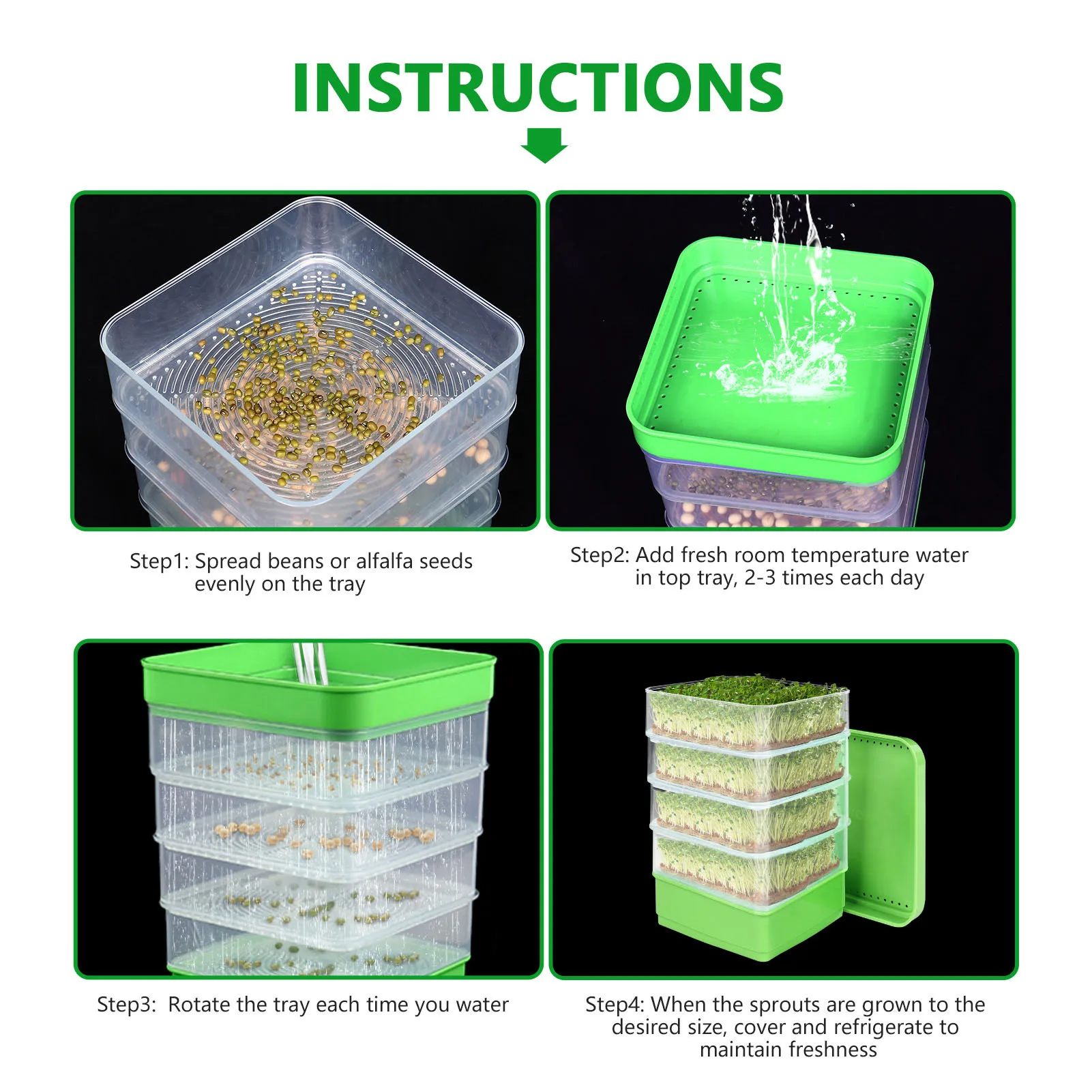Stackable Sprouter Kit 4 Tier Space Saving Multipurpose Micro Vegetable Growing Tray for Bean Sprouts Microgreens