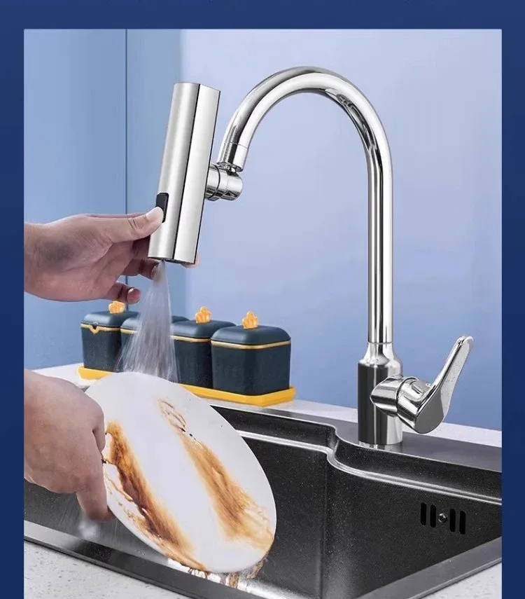Universal Swivel Kitchen Faucet with Splash-Proof Waterfall Nozzle - Three-Mode Extension Sink Multi-Function